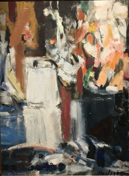 Critics and historians have called Grace Hartigan both a second-generation Abstract Expressionist painter and a forebear of Pop art, though she was not satisfied with either categorization. In explaining the content and purpose of her work, Hartigan once said: “Perhaps the subject of my art is like the definition of humour—emotional pain remembered in tranquillity.” Hartigan painted intensely colored, gestural figures, inspired by colouring books, film, canonical painting, and advertising. She was a disciple of Jackson Pollock and Willem de Kooning, and also studied with Isaac Lane Muse. She gained early critical attention when in 1950, she was included in Clement Greenberg and Meyer Schapiro’s “New Talents” exhibition. In 1958, Hartigan was hailed by Life magazine as one of the best young female American painters.