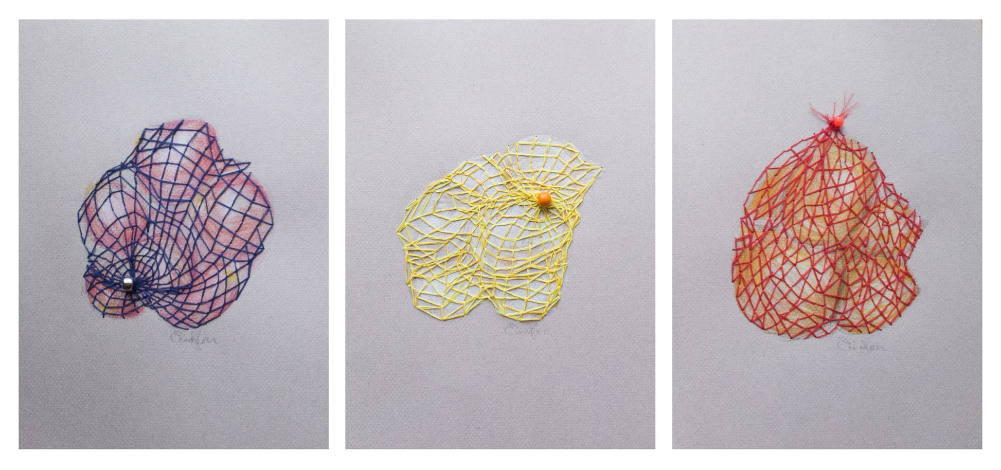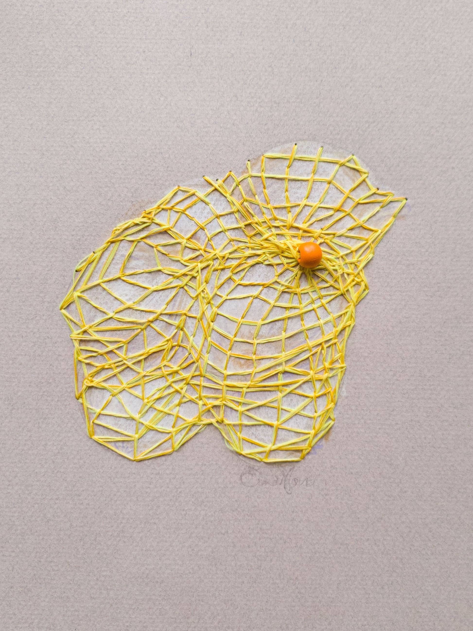 Medium: Watercolour pencil, thread, bead on Canson paper