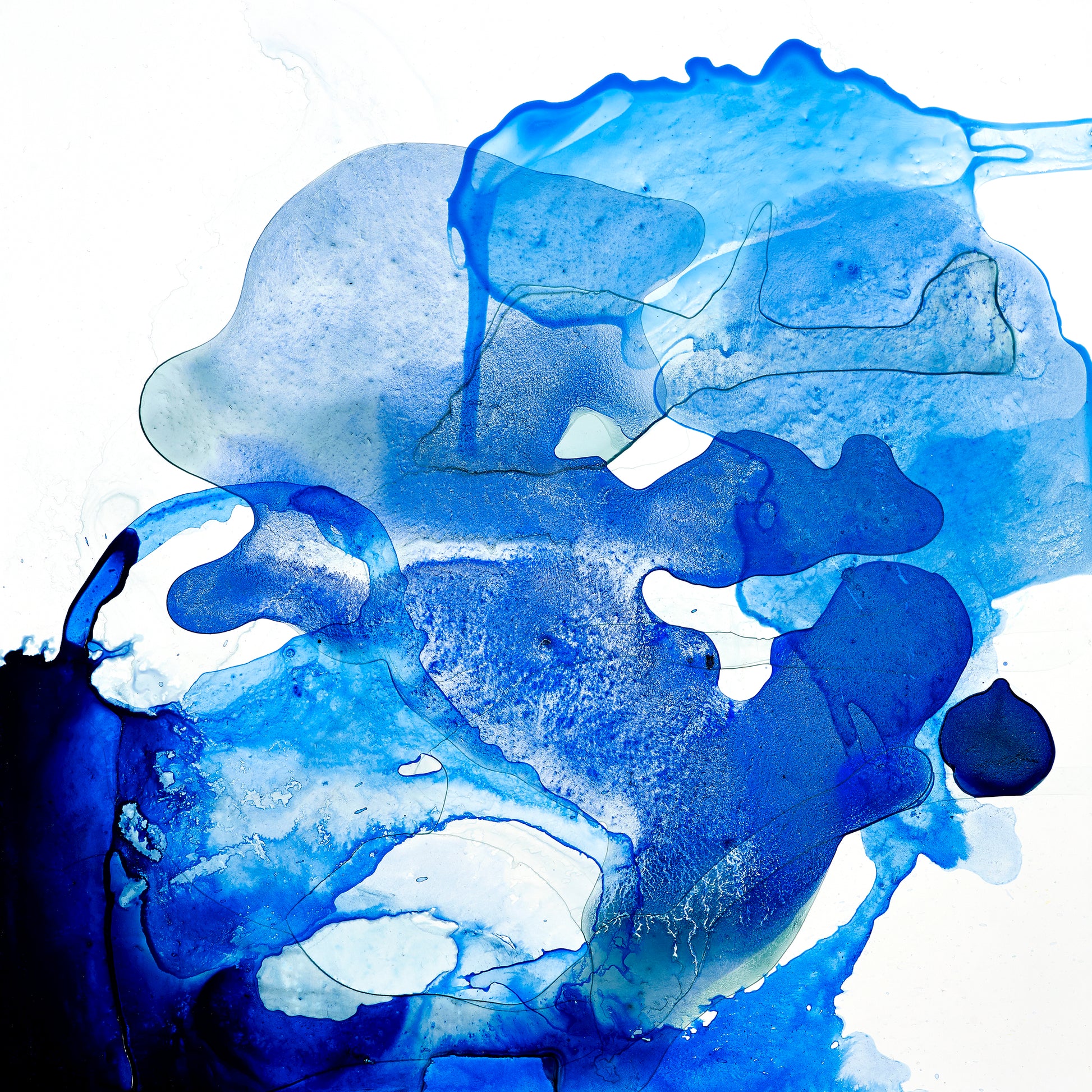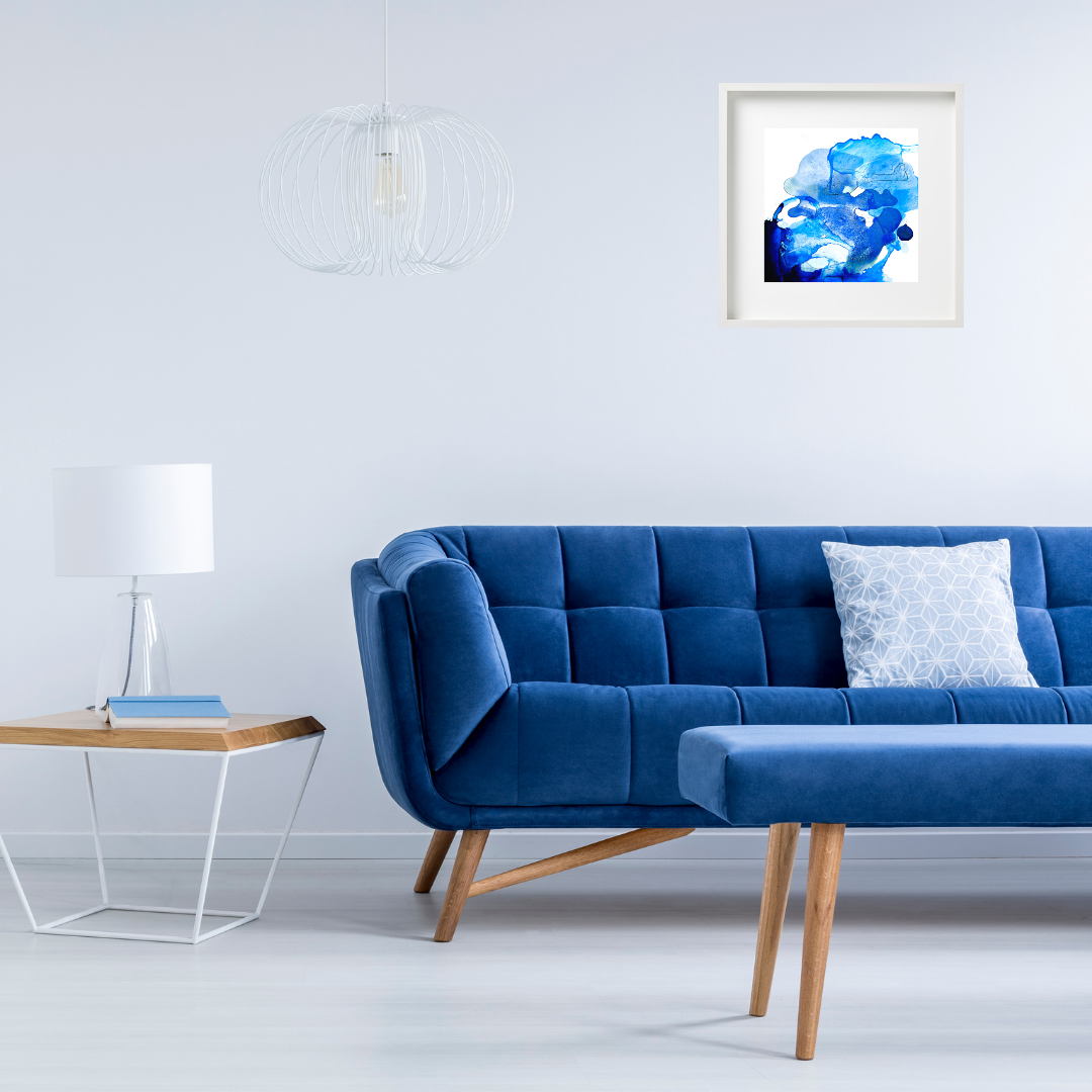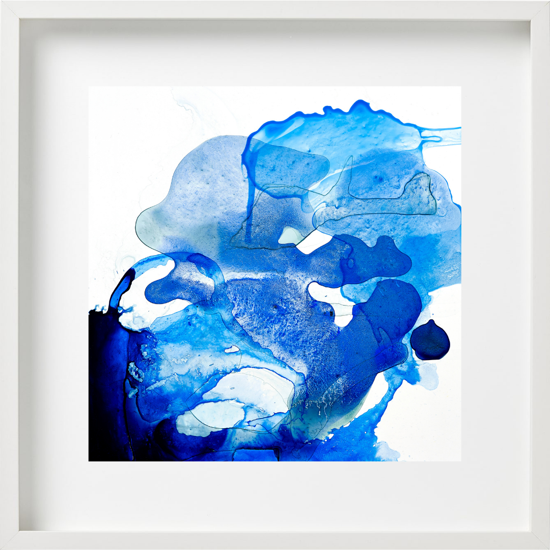 Blue Ocean is a statement of the deep colours we can find in the ocean. The different layers of colours are creating a dance on the paper. Pigments are floating on the page creating an illusion of a wave crushing on the reef.