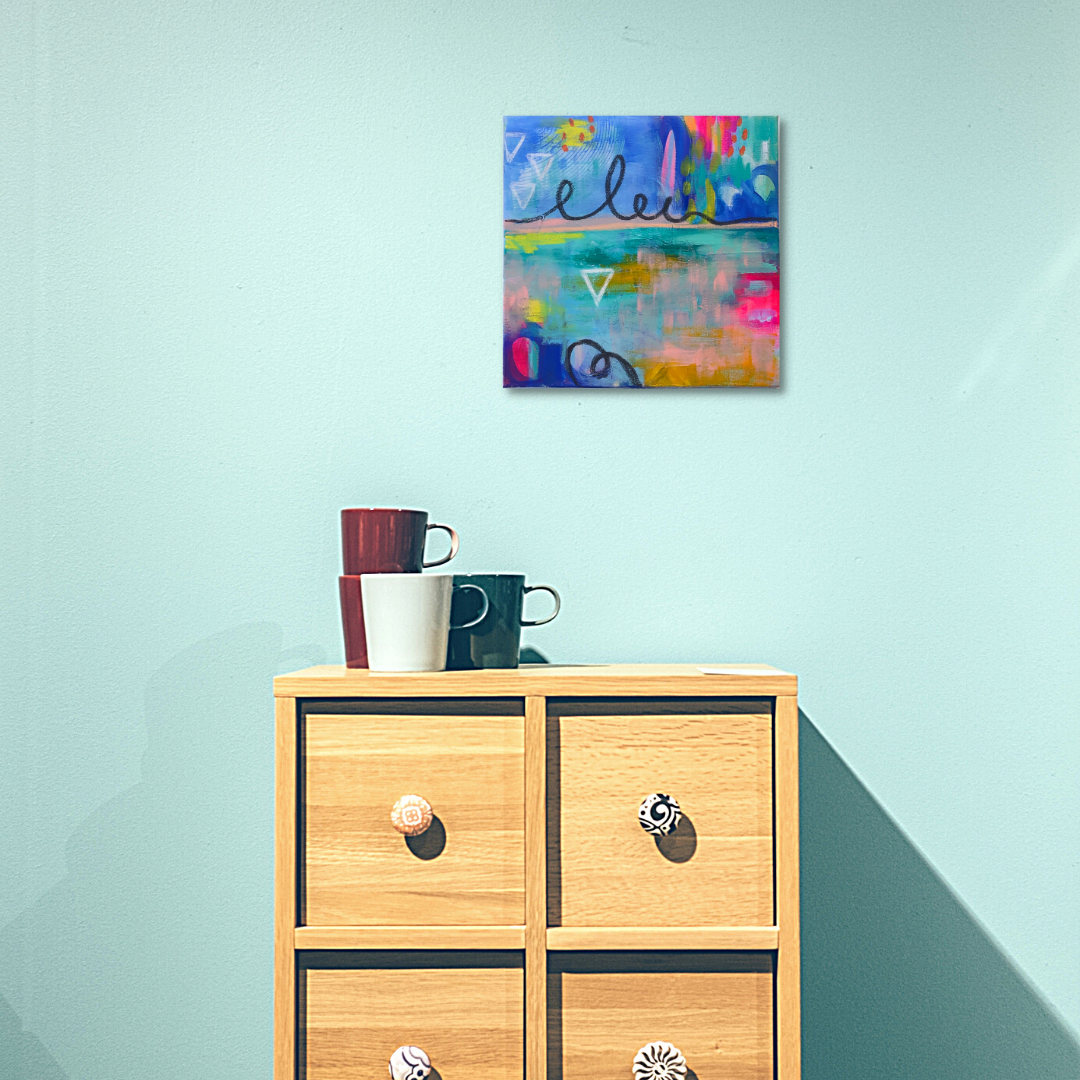 With her use of vibrant colour palettes, mixed media art materials and signature mark makings her work is guided by her intuition and often reveals layers of texture and shapes that dare to capture everyday joy often inspired by nature.
