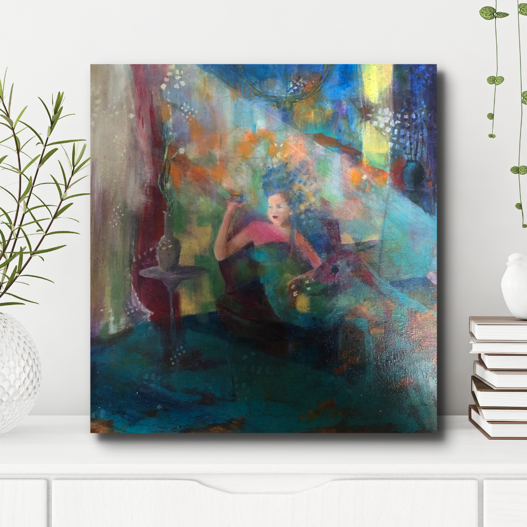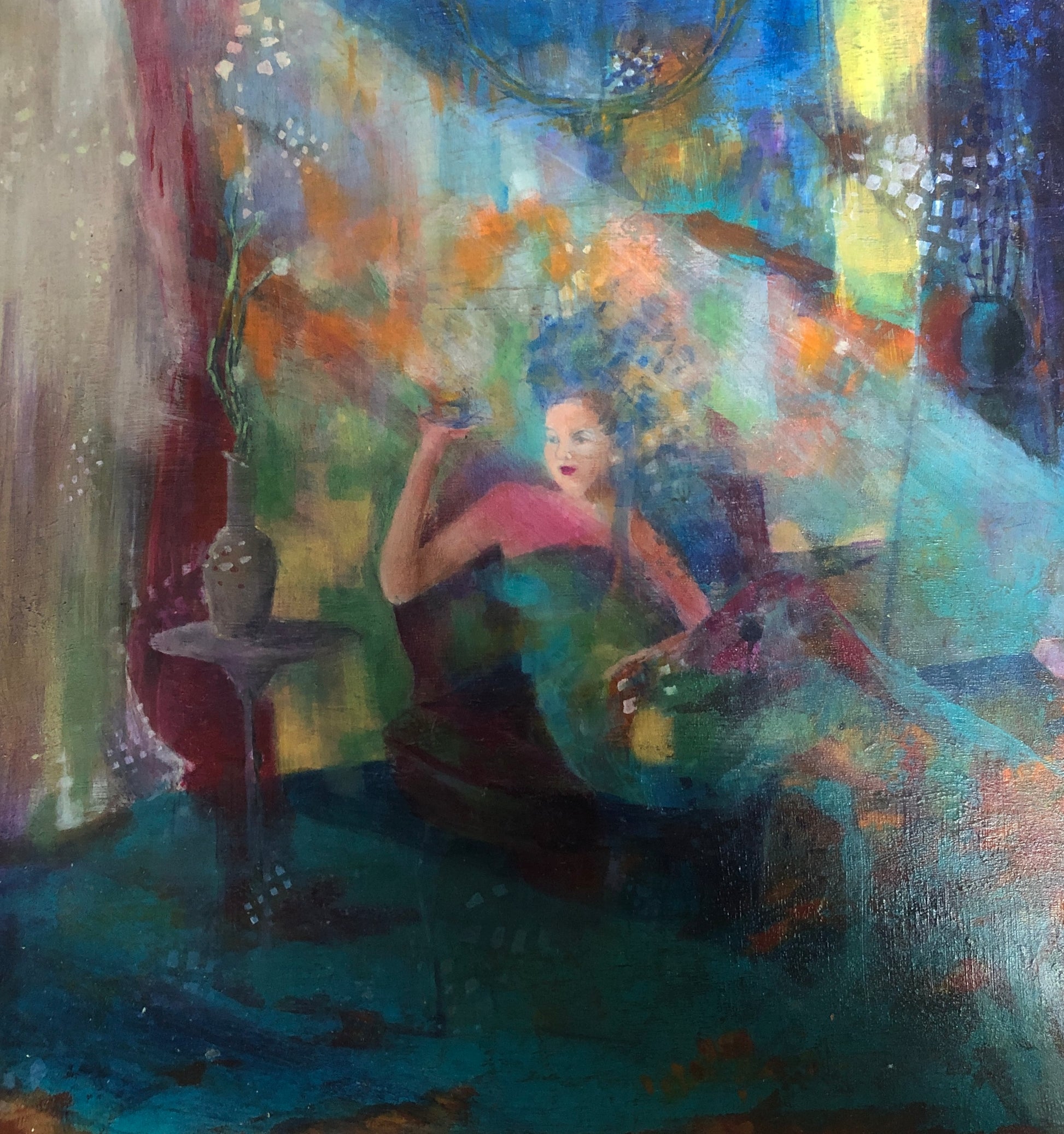 Woman in a beam of light. This is one of a series of feminine archetype paintings... The feminine strength and softness, a sense of mystery.