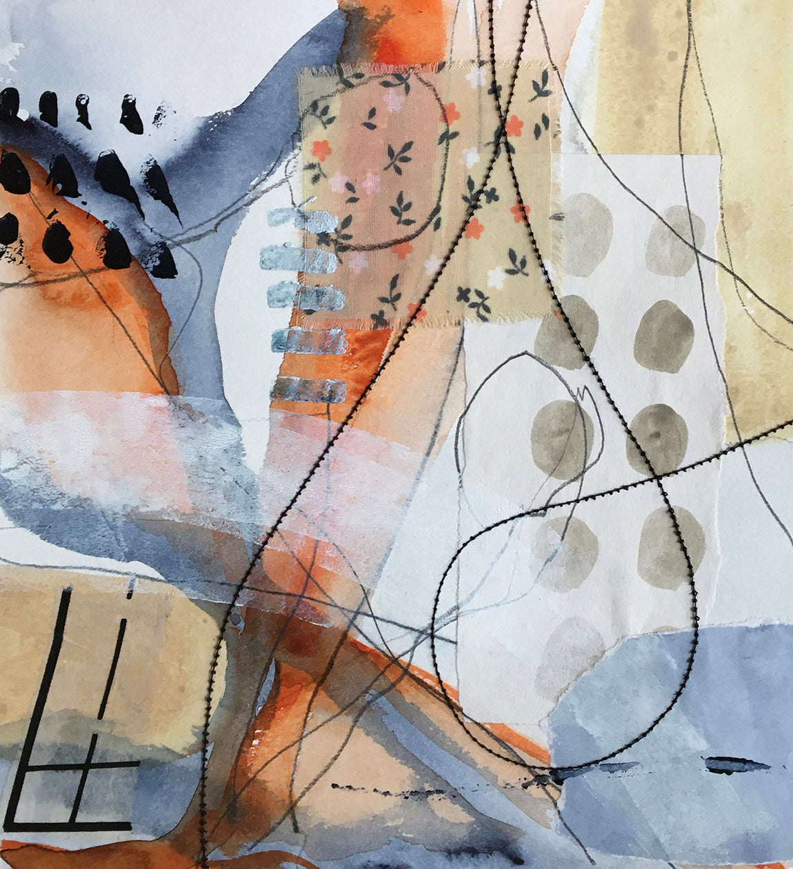 Mixed media work responding, exploring and uncovering layers of history though pattern, line and shape.