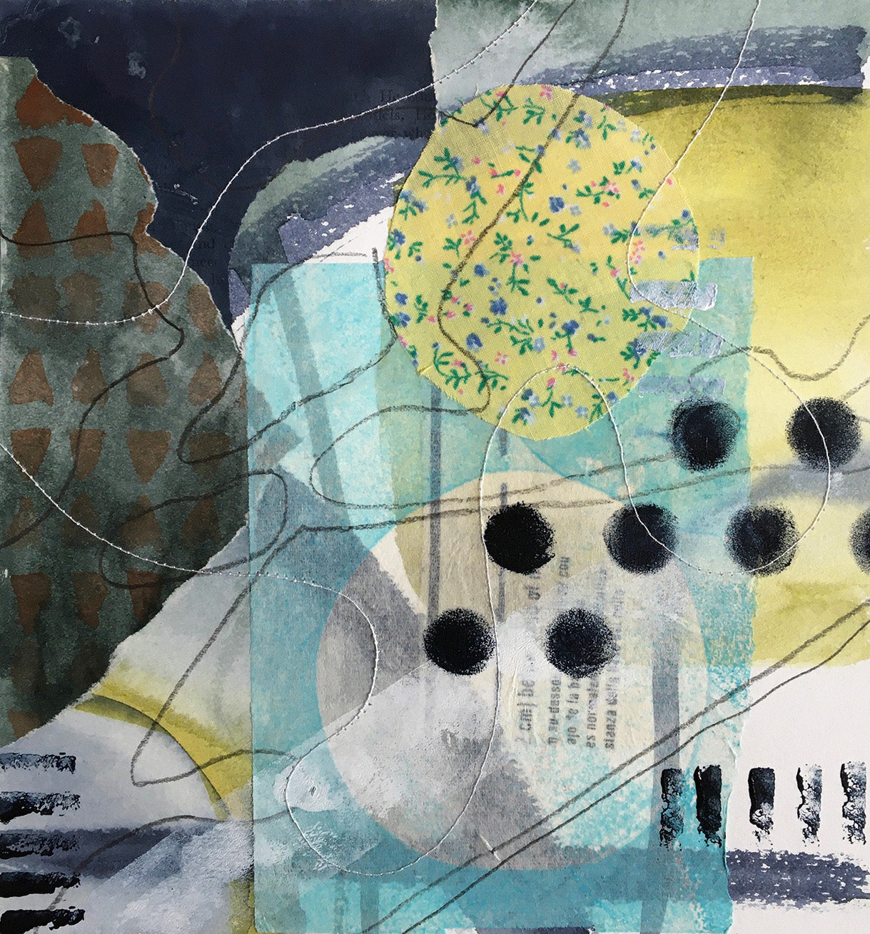 Mixed media work responding, exploring and uncovering layers of history though pattern, line and shape.