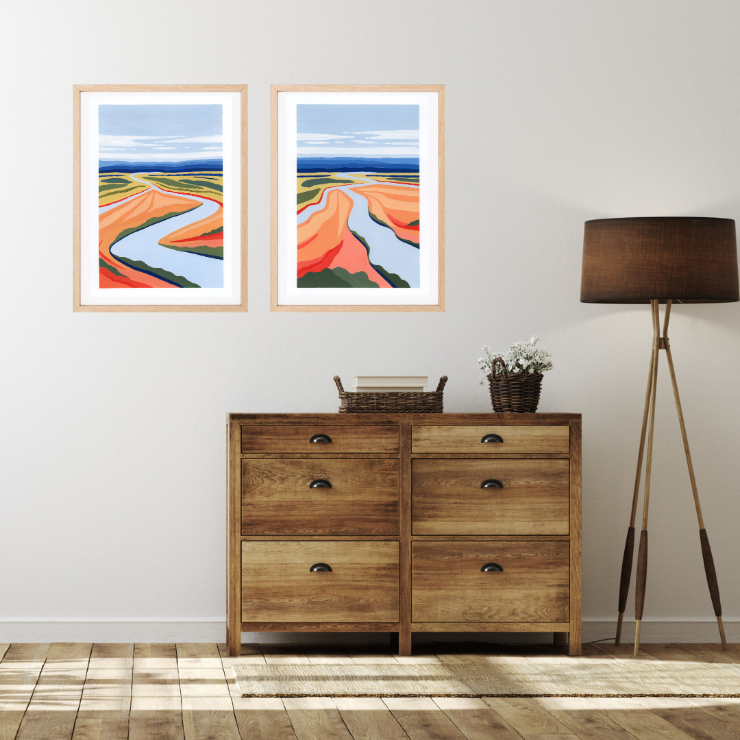 Capturing the vastness and magnitude of the twenty three kilometre river located inner south-west of Sydney. These paintings are a depiction of the well known Cooks River at different times of different seasons, always changing from low to high tide, but constantly connecting many people of different walks of life. Whether on the bike track or walking the dog alongside the riverbank, this river is full of many individual lives crossing paths every day.