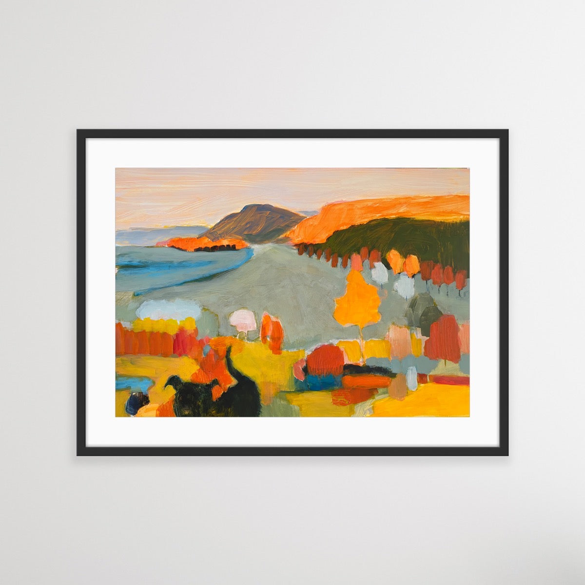 Robyn's captivating landscape paintings transport viewers to the Australian countryside, where rolling hills are bathed in warm hues during sunset. As the sun sets, the mountains radiate a warm glow against a serene blue sky, while vibrant greens and golden fields in the foreground create a lively atmosphere. Her expressive impressionistic style captures the essence of the natural terrain, infusing each piece with the vitality of the Australian landscape.