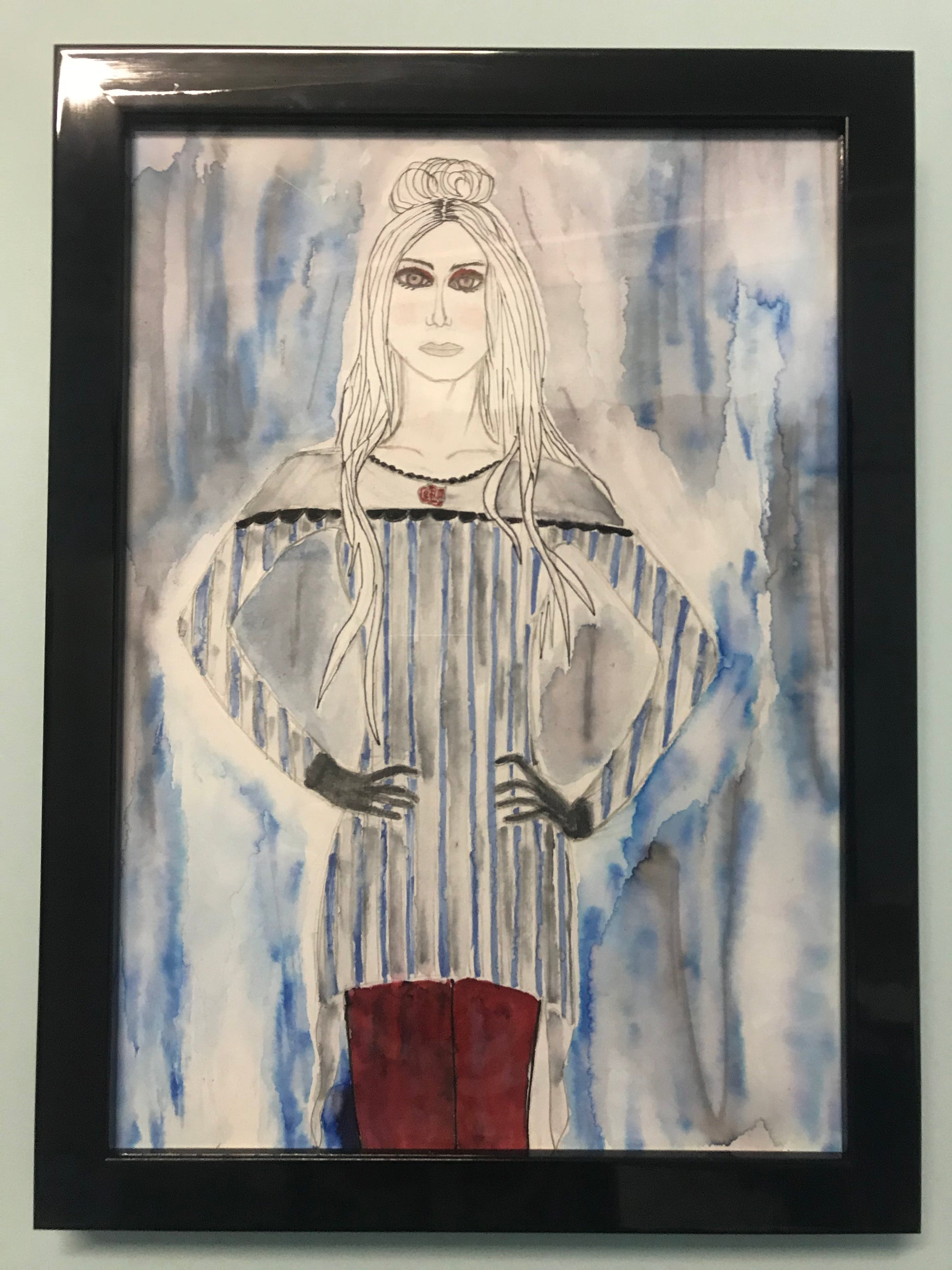 ‘Female Fashion’, is a watercolour and pen ink illustration, expressing the female form, both in a figurative and abstract manner.