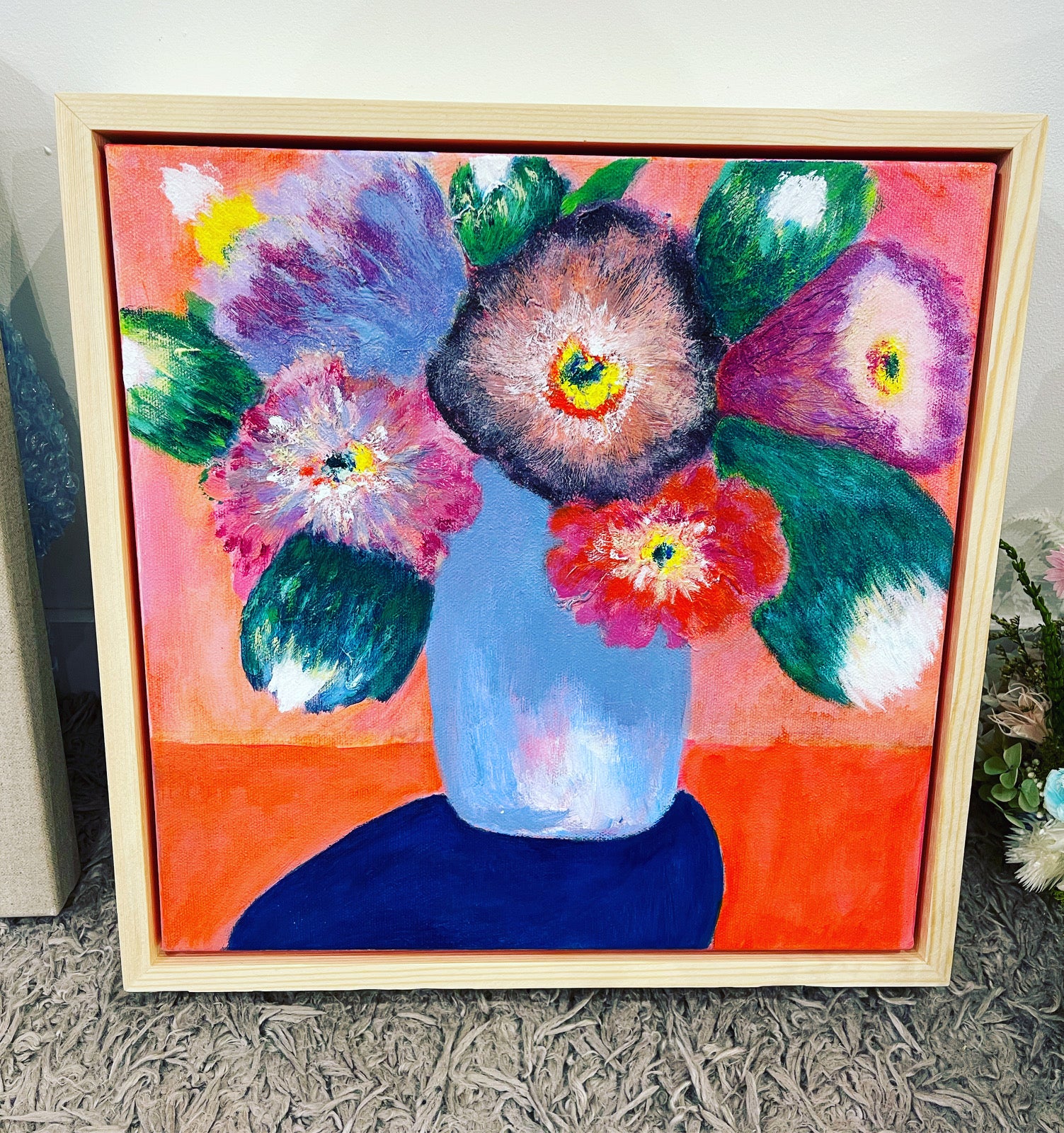 Still Life brings the memory of my grandfather painting flowers on the mezzanine level in his home. It was for him a way to connect with nature. This painting was made thinking of it. "Flowers for my home" is about the joy of having flowers and the memories we can recall by looking at them.