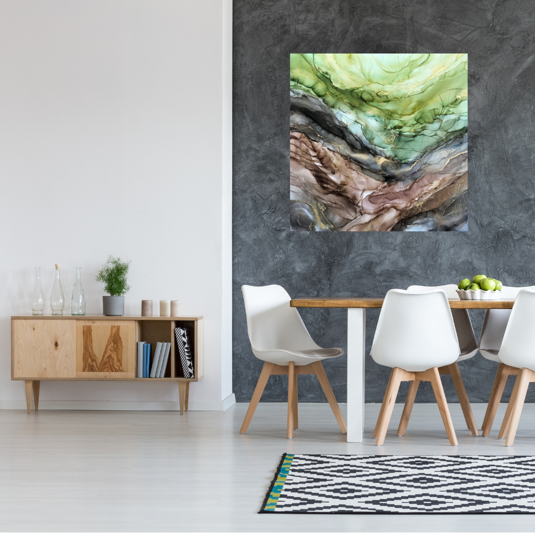 The idyllic, captivating colours in Gaia embodies the zodiac element of earth. Those born with an earth sign are often grounded, stable and pragmatic souls who are down to earth and reliable. The name of this piece is inspired by Gaia, the Goddess of Mother Nature in Greek Mythology. Gaia portrays elements of the earth from the dark soils underground to the verdant green hills and lush flora on earth. Being surrounded by the majestic nature on earth from rainforests to snowy mountains, makes us feel at one with Mother Nature. To be able to be consciously aware of walking barefoot across the grass or feel the sand between our toes allows us to feel more grounded when it feels like weβre flying in all sorts of directions.